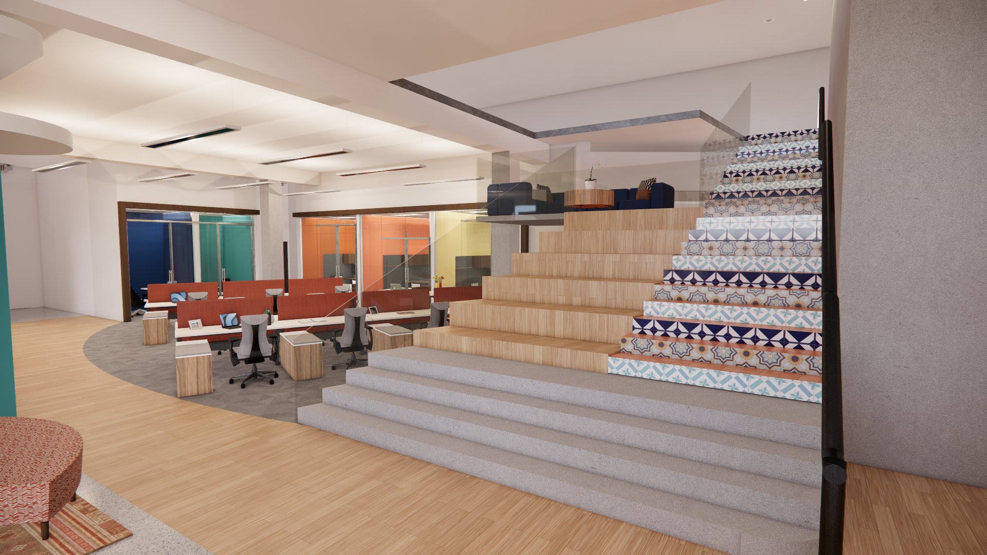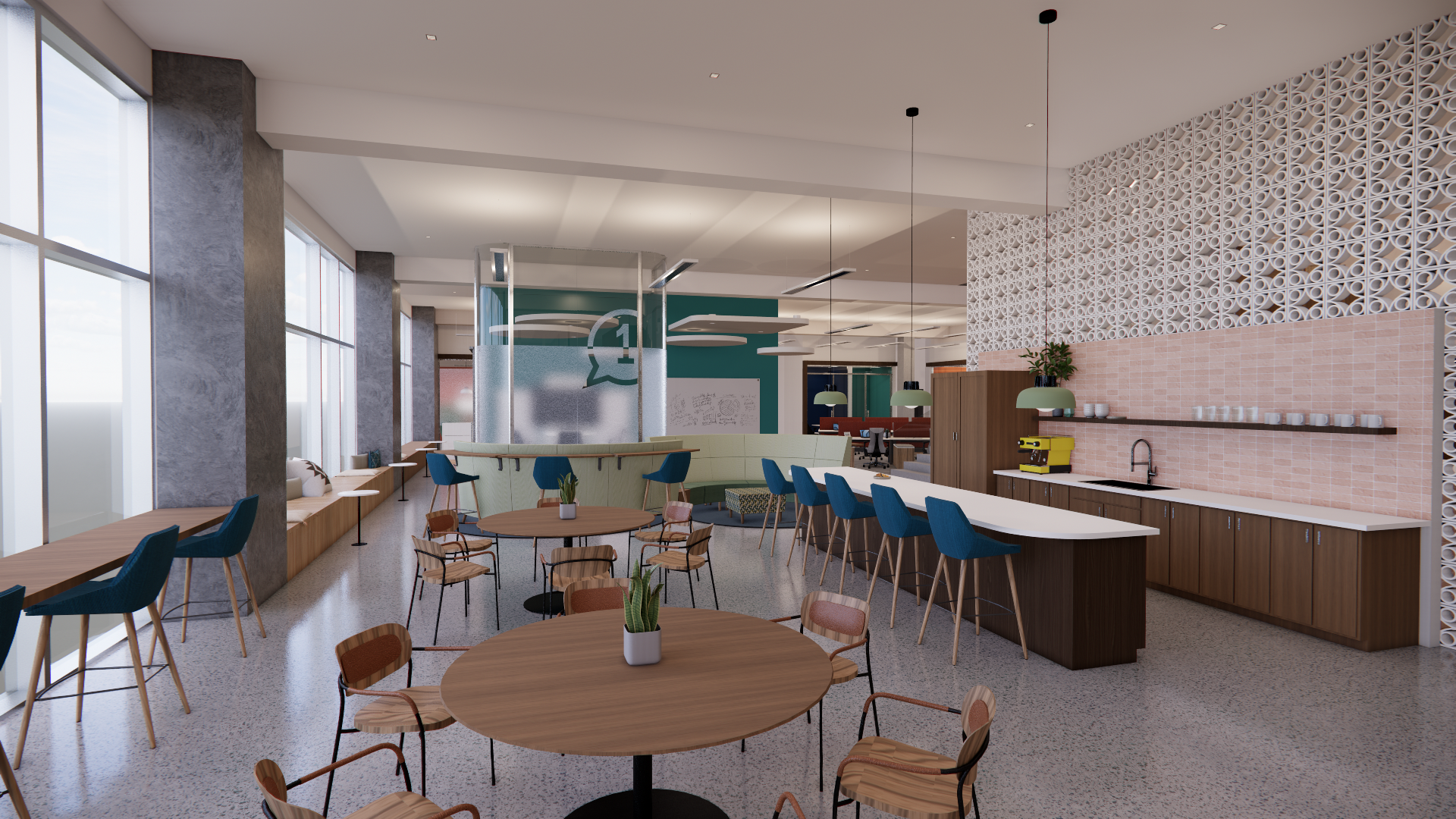 Brickell, as home to many of the Latin American headquarters and regional offices of large companies is widely considered “the gateway to Latin America”. WhatsApp is the largest messaging app in South America, used to connect people across the world. Therefore, in an effort to create a sense of warmth, home, connection, and ownership among employees, the office space is designed with an eye towards traditional “Miami” and Latin design elements. Within the limited footprint of the space, each employee is provided with their own personalizable work area. Further, there are several collaborative spaces that can accommodate from the entire office workforce down to a meeting of just a few people. We have even provided private quiet spaces to offer employees much needed space to retreat for virtual meetings or a moment of mental restoration.